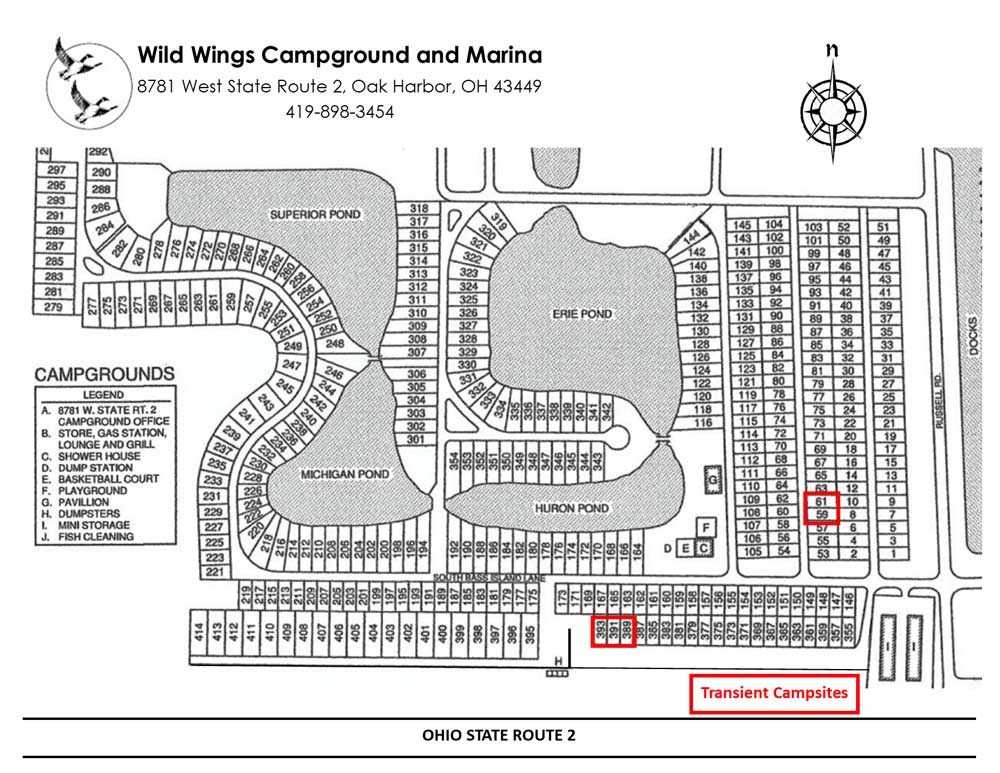 - Transient visitors have a choice of either full-service or water and electric sites. All transient sites are back-in only. Reservations based on availability for daily, weekly, or monthly stays. (Click on the tab above labeled "Transient Rentals" for more information)