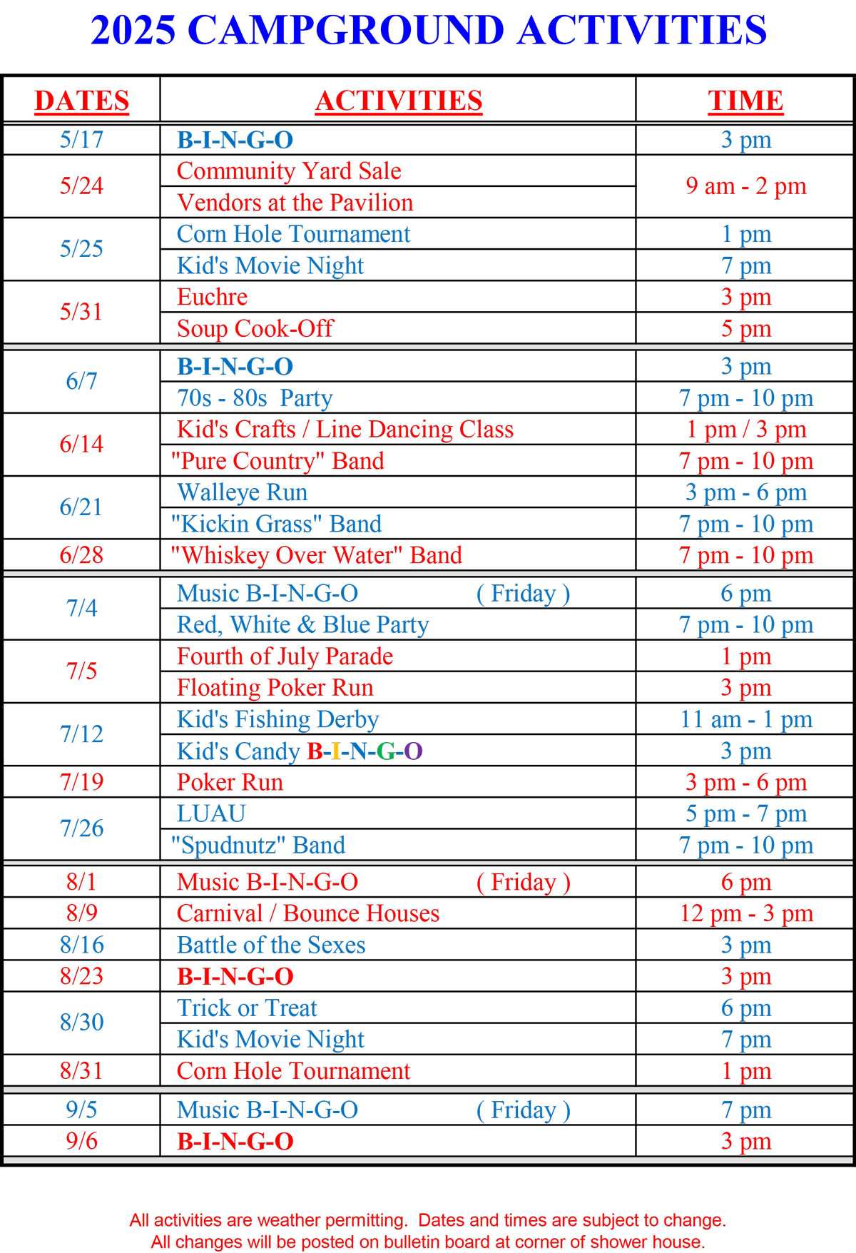 - An enthusiastic group of volunteer campers organizes many fun activities throughout the summer. (Click the tab above labeled "activities" for current year activities.)